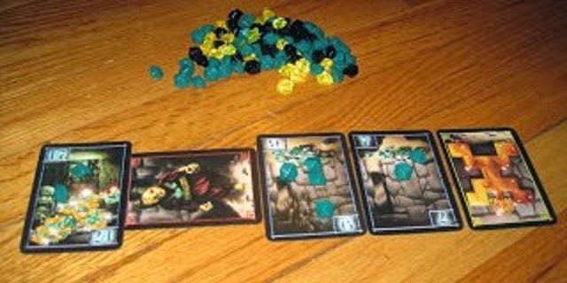 A wilder design is the card game Castle. Here the objective is to be the first to get rid of all of your cards by playing them to four different areas. There are many types of cards and each type can only be played to one of the four play areas. After playing a card, you place an ownership token on it. The chaotic factor is that each has a different power or ability that interacts differently with other cards in play. Many send cards back to the original owner. However, some cards switch around ownership tokens so that when a card returns, it may not go to the original owner – much to the new recipient’s chagrin! The board is constantly changing and shuffling as cards fly out, interact with other cards already played, and send others back into players’ hands. It’s not so much pure randomness just for chance’s sake, as it is a tapestry of disorder woven by player decisions.
